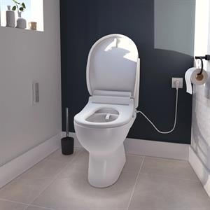 - Saniseat: Inspired by the Japanese toilet, Saniseat is a detachable smart seat for toilets that washes and dries. It is equipped with a double nozzle shower and a warm air fan. Compatible with most standard toilet bowls on the market, it can be installed on a floor-mounted or wall-mounted toilet. The Saniseat smart toilet offers numerous adjustment options: water temperature, drying temperature, and heated seat temperature. To facilitate use, you can also save your last settings.