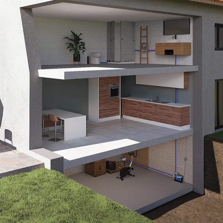 Saniboost Smart is a domestic pressurisation unit equipped with a multi-stage, variable speed pump, an integrated electronic pressure switch, and a hydraulic shock absorber. A multifunctional water supply system, it can be installed in both apartments and houses to increase water pressure and also used for garden irrigation. With a maximum flow rate of 5.2 m³/h and a maximum head of 56 m, this pressure boosting system offers not only high performance but also a compact design, quiet operation <50dB(A), and the capability of higher pressure.