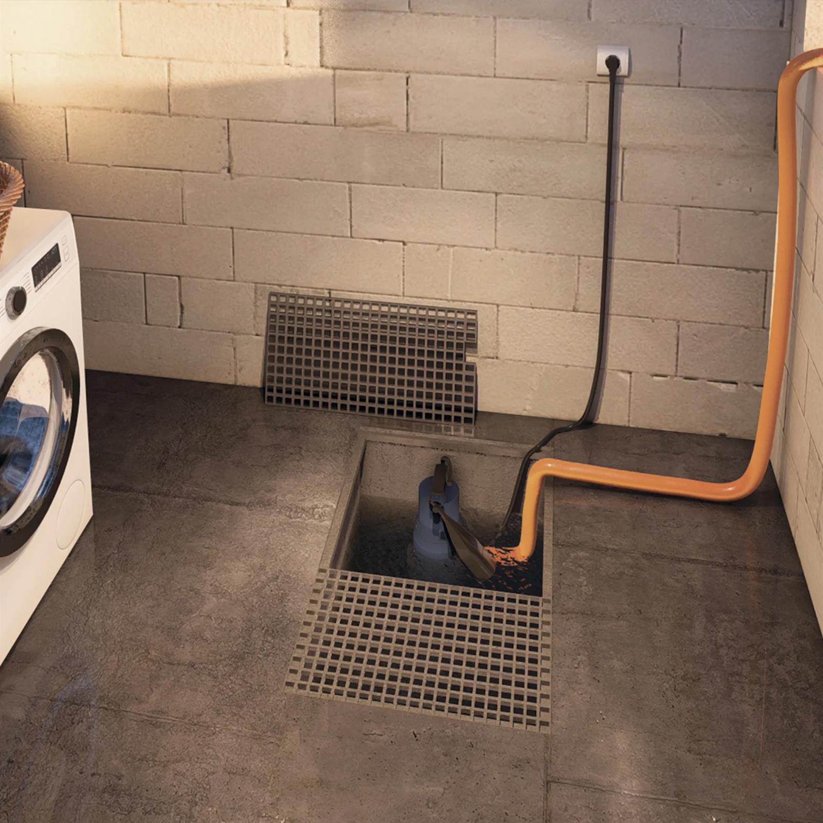 This flood pump operates automatically thanks to its integrated activation arm.