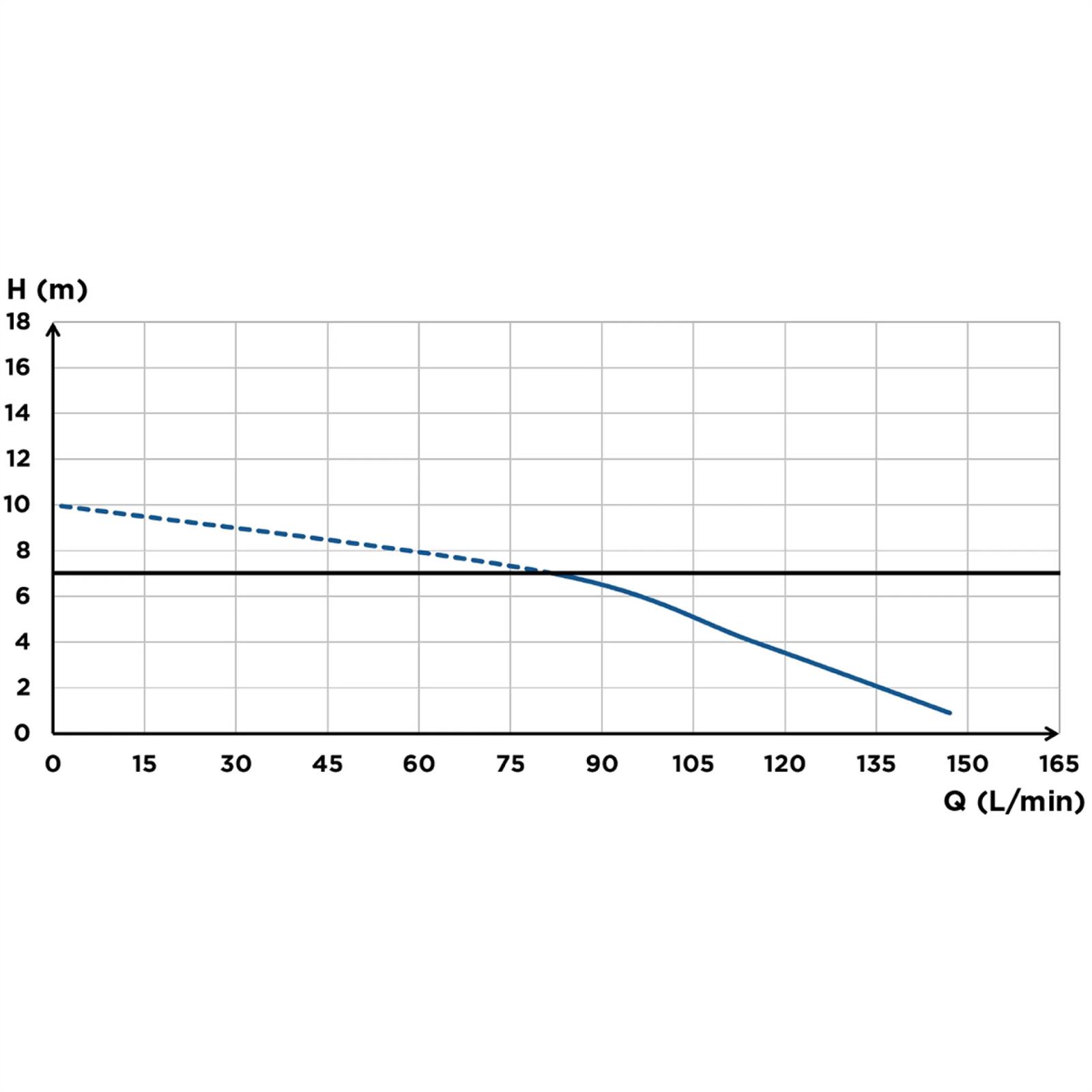Pumps up to 7m vertically or 110m horizontally
