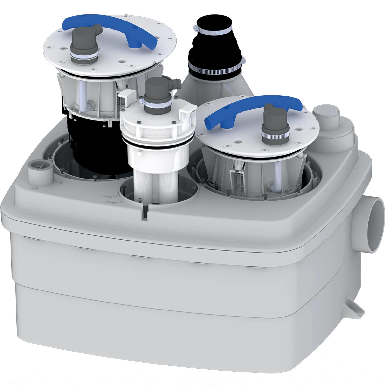The Sanicubic 2 Classic is a tough, reliable macerator pump which contains two separate load balanced macerator systems which operate alternately ensuring even wear of motors. It is ideal for busy business and large domestic situations. The unit can handle waste water from WC’s, a basin, sink, washing machine, dishwasher, shower, bath, and bidet. The Sanicubic 2’s new design means the motors are easily removable for servicing and maintenance as is the water level indicator. It has two alarms for ultimate safety both are hard-wired alarms. The Sanicubic 2 Classic has four inlets, the centre height of the inlets is 140mm and it discharges through 50 mm pipework. It has a working temperature of 35ºC, however it will handle temperatures up to 75ºC for short periods. The Sanicubic 2 has a tank capacity of 45 litres and a flow rate 13m³/h. It can be connected to a Building Management System. The Sanicubic 2 Classic comes with a 2 year warranty.Designed, made and tested in our factory in France and with 60 years of expertise and innovation, the Sanicubic 2 offers you peace of mind and with the back up from our service team there’s never been a better time to install a SFA.