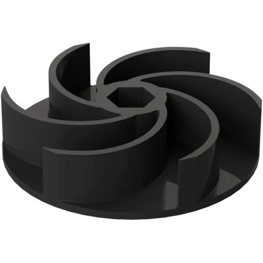 A double-channel wheel has two channels to allow the evacuation of liquids loaded with solid particles. It is particularly effective for pumping wastewater or loaded liquids, reducing the risk of blockages.